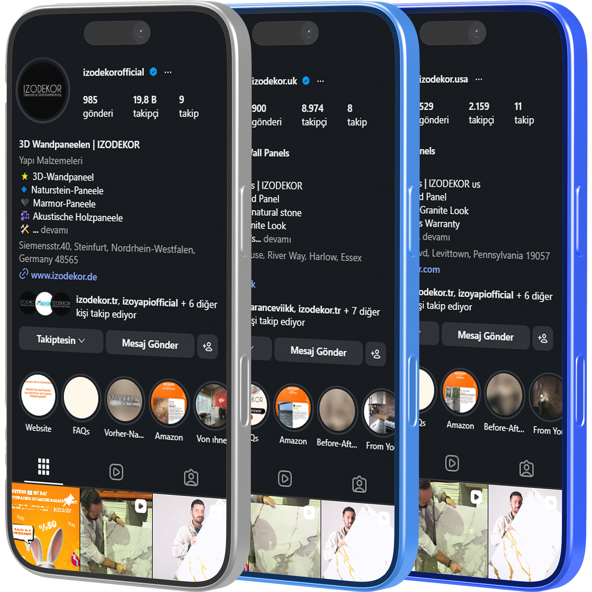 Avrupa ve Amerika’daki markalarımızın güncel projelerini, uygulamalarını ve içeriklerini sosyal medya hesaplarından takip edebilirsiniz.